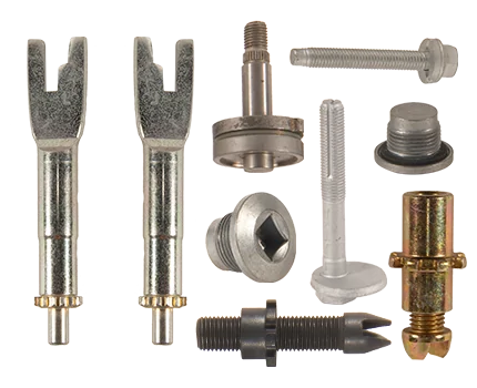 Specialized Cold Headed Fasteners, Ride Control Products, Brake Products, Assembled Products, Adjuster Assemblies, Adjuster Screws, Anchor Pins, Brake Pistons, Caliper Pins, Pin Bolts, Electronic Parking Brake (EPB) Components, Push Rods, Stake Studs, Mounting Studs, Tie Rods, Bushing, Damper Inserts, Cam Bolts, Taper Pins, Joint Caps, Reservoir Cups, Weld Stems, Wheel Bolts